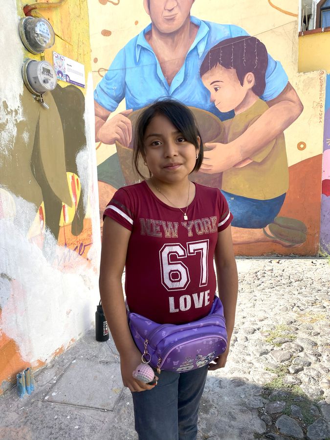 My name is Giselle, I live in Xananetla, I'm 9 years old, I like watching films and reading.